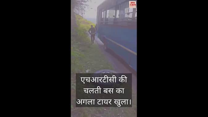 VIDEO : एचआरटीसी की चलती बस का अगला टायर खुला, यात्रियों में मची चीख-पुकार