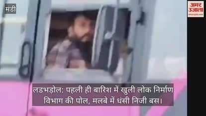 लडभड़ोल: पहली ही बारिश में खुली लोक निर्माण विभाग की पोल, मलबे में धंसी निजी बस