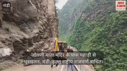 Mandi: जोगणी माता मंदिर के पास पहाड़ी से भूस्खलन, मंडी-कुल्लू राष्ट्रीय राजमार्ग बाधित