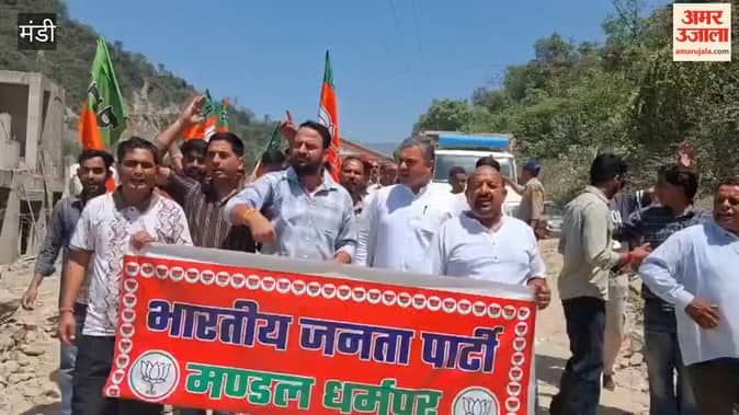Mandi: कैंची मोड़ पर बंद सड़क को लेकर भाजपा का धरना-प्रदर्शन, जल्द बहाली की मांग