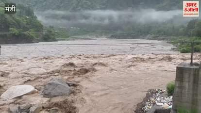Mandi Jauni Khad in its fierce form all five gates of Pandoh Dam also opened Production stopped in Dahar Power House