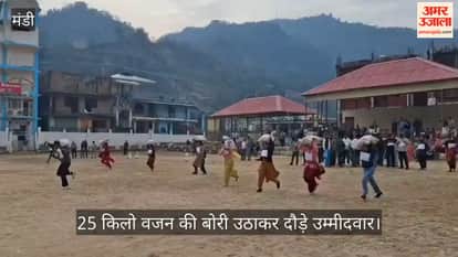 Mandi Physical test conducted for Animal Welfare Volunteer recruitment in Dharampur; candidates were made to run while carrying a 25 kg sack