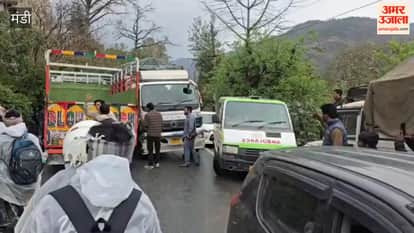 Mandi: पंडोह के तीन पीपल के पास दो ट्रकों की टक्कर, लंबा जाम लगा