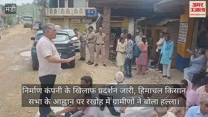 Mandi: निर्माण कंपनी के खिलाफ प्रदर्शन जारी, हिमाचल किसान सभा के आह्वान पर रखोह में ग्रामीणों ने बोला हल्ला