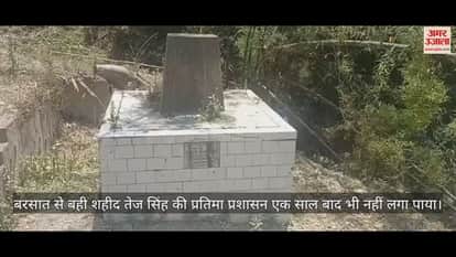 VIDEO : बरसात से बही शहीद तेज सिंह की प्रतिमा प्रशासन एक साल बाद भी नहीं लगा पाया