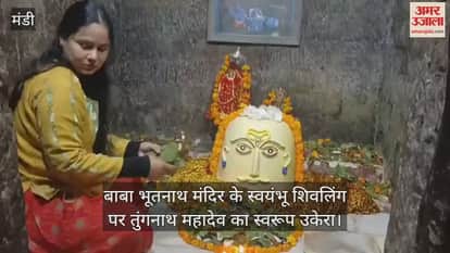 बाबा भूतनाथ मंदिर के स्वयंभू शिवलिंग पर तुंगनाथ महादेव का स्वरूप उकेरा