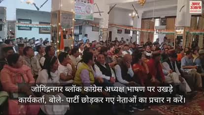 VIDEO : जोगिंद्रनगर ब्लॉक कांग्रेस अध्यक्ष भाषण पर उखड़े कार्यकर्ता, बोले- पार्टी छोड़कर गए नेताओं का प्रचार न करें