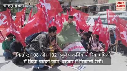 108 और 102 एंबुलेंस सेवा के कर्मचारियों ने अपनी विभिन्न मांगों को लेकर रिकांगपिओ में चक्का जाम कर जोरदार विरोध प्रदर्शन किया। रिकांगपिओ बाजार में विशाल रैली निकाल कर प्रदेश सरकार से जल्द उनकी मांगों को पूरा करने मांग की गई। 108 और 102 के महासचिव सुजाता ने कर्मचारियों की गंभीर समस्याओं पर प्रकाश डाला और हिमाचल सरकार से तुरंत इन पर ध्यान देने का आग्रह किया। सुजाता ने बताया कि एंबुलेंस कर्मचारियों से 8 घंटे के बजाय 12-12 घंटे की लंबी ड्यूटी ली जा रही है, जबकि उन्हें इसका पूरा और उचित वेतन भी नहीं मिल रहा है। प्रदर्शनकारियों ने चेतावनी दी कि यदि उनकी मांगें पूरी नहीं हुईं तो वे अपना विरोध प्रदर्शन जारी रखेंगे, भले ही इसके लिए उन्हें दिन-रात काम करना पड़े। सुजाता ने कहा कि आज तो केवल 24 घंटे की हड़ताल है, अगर आने वाले समय में उनकी मांगें नहीं मानी गईं, तो वे अनिश्चितकालीन अनशन पर बैठने को मजबूर होंगे।