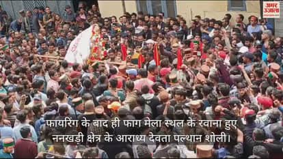 VIDEO : फायरिंग के बाद ही फाग मेला स्थल के रवाना हुए ननखड़ी क्षेत्र के आराध्य देवता पल्थान शोली