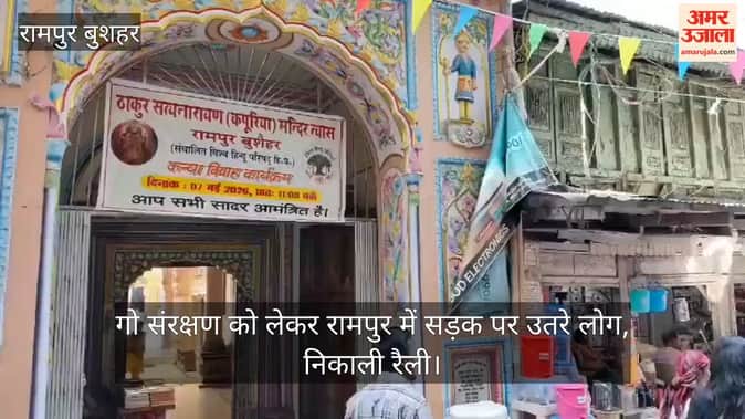 रामपुर में सोमवार को गो माता के सम्मान और संरक्षण को लेकर लोग सड़क पर उतरे। इस दौरान विभिन्न सामाजिक संगठनों के लोगों ने रैली निकाली। रामपुर में गो सम्मान आह्वान अभियान के तहत गो संरक्षण के कार्य में जुटी गौ रक्षा सेवा समिति सहित अन्य सामाजिक व धार्मिक संगठनों ने जागरूकता रैली का आयोजन किया। शहर के सत्यनारायण मंदिर से रैली शुरू हुई और बाजार होकर एसडीएम कार्यालय तक रैली निकाली गई। रैली के जरिये गो माता के सम्मान और संरक्षण का संदेश दिया। वहीं एसडीएम रामपुर हर्ष अमरेंद्र सिंह के माध्यम से राज्यपाल कविंद्र गुप्ता, मुख्यमंत्री सुखविंद्र सिंह सुक्खू और उपायुक्त अनुपम कश्यप के नाम ज्ञापन सौंपा। गो सेवा, सुरक्षा और सम्मान को लेकर लोगों ने एकजुटता दिखाई। गो संरक्षण, सम्मान, गो हत्या पर पूरी तरह से प्रतिबंध और गो तस्करों के खिलाफ कड़ी सजा का प्रावधान सुनिश्चित करने के लिए विभिन्न सामाजिक और धार्मिक संगठनों ने एकजुट होकर सरकार से मांग उठाई। विनय शर्मा सहित अन्य वक्ताओं ने कहा कि गोवंश भारतीय संस्कृति और आस्था का अभिन्न हिस्सा है। इसकी रक्षा करना सभी का कर्तव्य है। उन्होंने सरकार से जल्द आवश्यक कदम उठाने की मांग उठाई है। इस मौके पर श्री हरिकृष्ण गोसदन खोपड़ी की संचालिका अंबिका श्याम, नीरज श्याम, विष्णु शर्मा, संग्राम सिंह और अन्य संगठनों के पदाधिकारी सहित अन्य लोग उपस्थित रहे।