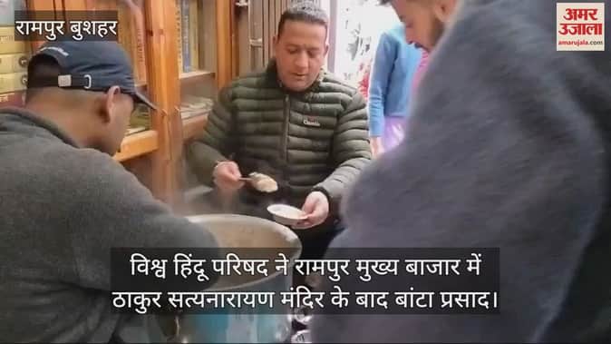 VIDEO : विश्व हिंदू परिषद ने रामपुर मुख्य बाजार में ठाकुर सत्यनारायण मंदिर के बाद बांटा प्रसाद