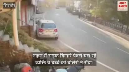 VIDEO : नाहन में सड़क किनारे पैदल चल रहे व्यक्ति व बच्चे को बोलेरो ने रौंदा