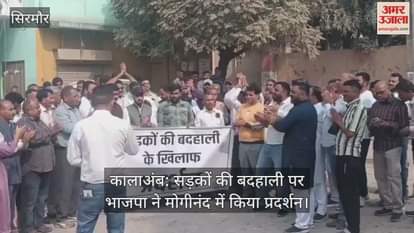 कालाअंब: सड़कों की बदहाली पर भाजपा ने मोगीनंद में किया प्रदर्शन