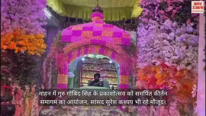 नाहन के ऐतिहासिक गुरुद्वारा श्री दशमेश अस्थान साहिब में गुरु गोबिंद्र सिंह के प्रकाशोत्सव को समर्पित कीर्तन समागम आयोजित हुआ। इस मौके पर सैकड़ों की संख्या में संगतों ने गुरु ग्रंथ साहिब जी के चरणों में शीश नवाया। इस मौके पर विशेष तौर पर सांसद सुरेश कश्यप ने शिरकत की । गुरु गोबिंद सिंह महाराज के प्रकाश उत्सव को समर्पित नाहन के गुरुद्वारा दशमेश अस्थान साहिब में 15 जनवरी से लेकर 19 जनवरी तक विशेष गुरमत समागम व धार्मिक कार्यक्रम आयोजित हुए। शुक्रवार को यहां आयोजित कीर्तन समागम में बाहरी राज्यों से पहुंचे दल ने कीर्तनकर संगत को निहाल किया। सांसद सुरेश कश्यप ने कहा कि आज गुरु गोबिंद सिंह महाराज के पूरे परिवार की शहादत की चलते देश व धर्म सुरक्षित है। उन्होंने कहा कि गुरु गोबिंद सिंह ने अपने चारों साहबजादे, माता व पिता समेत स्वयं को देश की रक्षा के लिए न्योछावर कर दिया। उन्होंने कहा कि नाहन से भी गुरु गोबिंद सिंह का एक अलग नाता है। अपने जीवन के आठ महीने उन्होंने नाहन में बिताए और नाहन की इस पावन धरती पर आज उनका प्रकाश उत्सव बड़ी धूमधाम के साथ मनाया जा रहा है ।