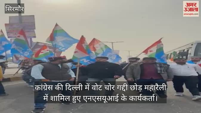 दिल्ली में कांग्रेस पार्टी की ओर से आयोजित वोट चोर, गद्दी छोड़ महारैली में एनएसयूआई के जिला अध्यक्ष मनदीप सिंह ठाकुर के नेतृत्व में सिरमौर जिला के कार्यकर्ताओं ने भाग लिया। इस महारैली में युवाओं ने बढ़-चढ़कर हिस्सा लिया और देश में व्याप्त तानाशाही के खिलाफ अपनी आवाज बुलंद की। जिलाध्यक्ष ने कहा कि एनएसयूआई सिरमौर का यह स्पष्ट संदेश है कि लोकतंत्र की रक्षा और संविधान की मजबूती के लिए युवा हर संघर्ष के लिए तैयार है।