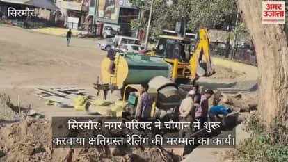 सिरमौर: नगर परिषद ने चौगान में शुरू करवाया क्षतिग्रस्त रेलिंग की मरम्मत का कार्य