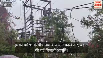 सिरमौर: हल्की बारिश के बीच नया बाजार में बदले तार, बहाल की गई बिजली आपूर्ति