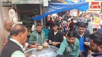 Sirmour: खेड़ा मंदिर समिति ने बड़ा चौक में बांटा दाल-चावल का प्रसाद