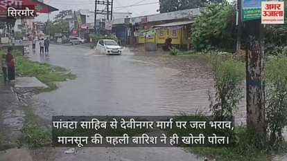 पांवटा साहिब से देवीनगर मार्ग पर जल भराव, मानसून की पहली बारिश ने ही खोली पोल