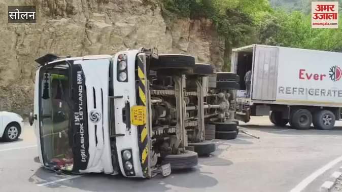 सोलन के कंडाघाट में अनियंत्रित होकर पलटा सेब से भरा ट्रक