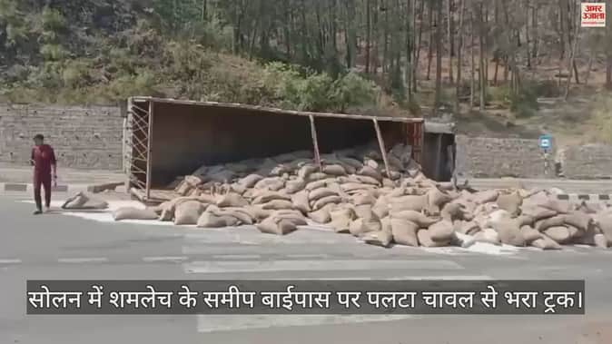VIDEO : सोलन में शमलेच के समीप बाईपास पर पलटा चावल से भरा ट्रक