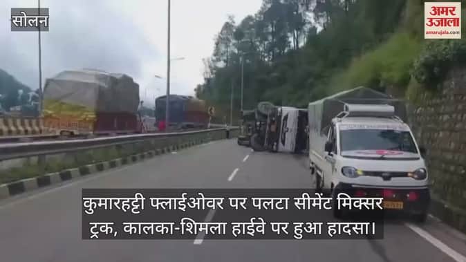 Solan: कुमारहट्टी फ्लाईओवर पर पलटा सीमेंट मिक्सर ट्रक, कालका-शिमला हाईवे पर हुआ हादसा
