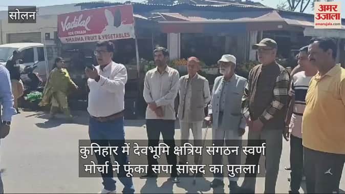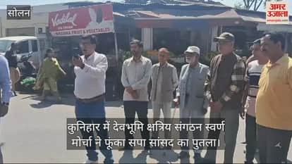 देवभूमि क्षत्रिय संगठन स्वर्ण मोर्चा ने राज्यसभा में राणा सांगा का अपमान करने का आरोप लगाते हुए सपा सांसद रामजी लाल सुमन का कुनिहार में पुतला फूंका । संगठन के अध्यक्ष रूमित सिंह ठाकुर ने कहा कि समाजवादी पार्टी के सांसद रामजी लाल सुमन महायोद्धा को गद्दार कहने का पाप कर रहे हैं, यह केवल एक योद्धा का नहीं, बल्कि सम्पूर्ण राजस्थान, भारत और हिंदू वीरता का अपमान है। यह वही मानसिकता है जो बार-बार हमारी संस्कृति, इतिहास और वीरों को लांछित करने का दुस्साहस करती है। इस अपराध के लिए पूरे राष्ट्र से सार्वजनिक रूप से क्षमा मांगनी होगी।