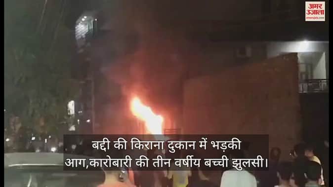 VIDEO : बद्दी की किराना दुकान में भड़की आग,कारोबारी की तीन वर्षीय बच्ची झुलसी