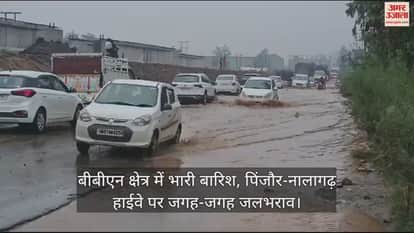 बीबीएन क्षेत्र में भारी बारिश हुई है। इससे पिंजौर-नालागढ़ हाईवे पर जगह-जगह पानी भर गया है। इससे वाहन चालकों को काफी परेशानी झेलनी पड़ रही है। इसके अलावा गलियों में भी जलभराव हुआ है।
