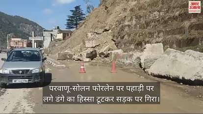 VIDEO : परवाणू-सोलन फोरलेन पर पहाड़ी पर लगे डंगे का हिस्सा टूटकर सड़क पर गिरा