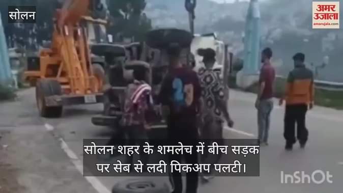 Solan: शमलेच में बीच सड़क पर सेब से लदी पिकअप पलटी