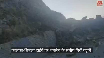 VIDEO : कालका-शिमला हाईवे पर शमलेच के समीप गिरीं चट्टानें