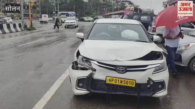 Solan: सोलन के न्यू बस स्टैंड पर तेज रफ्तार टैक्सी ने दो कारों को मारी टक्कर, बाल-बाल बचे यात्री