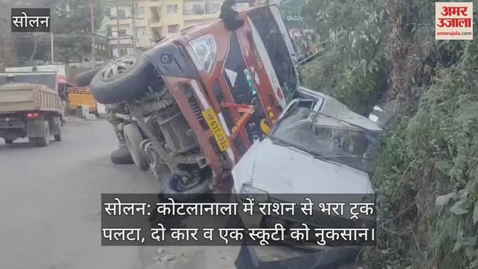सोलन: कोटलानाला में राशन से भरा ट्रक पलटा, दो कार व एक स्कूटी को नुकसान
