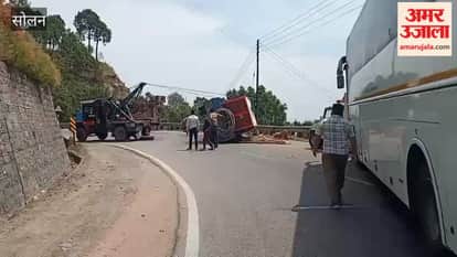 Solan: कुमारहट्टी के समीप पलटा ट्रक, आवाजाही पर पड़ा असर