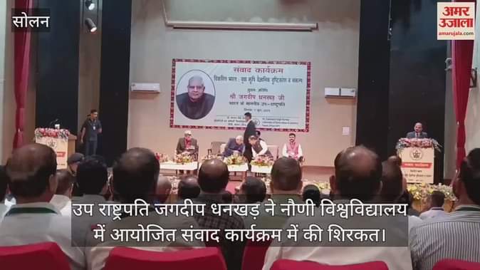 उप राष्ट्रपति जगदीप धनखड़ शनिवार को बागवानी एवं वानिकी विश्वविद्यालय नौणी में आयोजित संवाद कार्यक्रम में बताैर मुख्य अतिथि शिरकत की। यहां पर उन्होंने विद्यार्थियों और फैकल्टी सदस्यों से विकसित भारत: युवा कृषि वैज्ञानिक दृष्टिकोण व संकल्प विषय पर संवाद किया। कार्यक्रम के बाद सड़क मार्ग से सुप्रीम कोर्ट के पूर्व जस्टिस टीएस ठाकुर के घर जाएंगे। उसके बाद चंडीगढ़ चले जाएंगे और वहां से बंगलूरू रवाना होंगे।