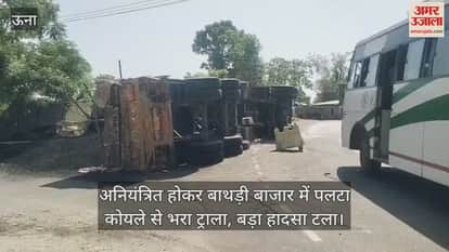 अनियंत्रित होकर बाथड़ी बाजार में पलटा कोयले से भरा ट्राला, बड़ा हादसा टला