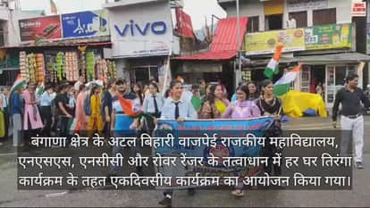 उपमंडल बंगाणा क्षेत्र के अटल बिहारी वाजपेई राजकीय महाविद्यालय, बंगाणा में एनएसएस, एनसीसी और रोवर रेंजर के तत्वाधान में हर घर तिरंगा कार्यक्रम के तहत एकदिवसीय कार्यक्रम का आयोजन किया गया। इस एक दिवसीय कार्यक्रम में एक विशाल रैली और स्वतंत्रता के महान नायकों के योगदान के संदर्भ में एक स्पेशल लेक्चर का आयोजन भी किया गया। कार्यक्रम की अध्यक्षता एनएसएस प्रोग्राम ऑफिसर प्रोफेसर सिकंदर नेगी ने की। कार्यक्रम के मुख्य अतिथि महाविद्यालय के प्राचार्य डॉ. रमेश ठाकुर थे। सबसे पहले महाविद्यालय के प्राचार्य ने छात्रों के विशाल रैली को संबोधित करते हुए कहा कि भारतीय राष्ट्रीय ध्वज पूरे देश के लिए राष्ट्रीय गौरव का प्रतीक है। हमारे ध्वज को और अधिक सम्मान देने के लिए हर घर तिरंगा' कार्यक्रम पूरे भारत वर्ष आयोजित किया जा रहा है। तिरंगा झंडे के साथ हमारा रिश्ता हमेशा व्यक्तिगत से ज़्यादा औपचारिक और संस्थागत रहा है। इस तरह एक राष्ट्र के तौर पर सामूहिक रूप से झंडे को घर लाना न सिर्फ तिरंगे से व्यक्तिगत जुड़ाव का प्रतीक है, बल्कि राष्ट्र निर्माण के प्रति हमारी प्रतिबद्धता का भी प्रतीक है। इस पहल के पीछे का विचार लोगों के दिलों में देशभक्ति की भावना जगाना और हमारे राष्ट्रीय ध्वज के बारे में जागरूकता को बढ़ावा देना है। इस अवसर पर एनसीसी ऑफिसर डॉ. विनोद कुमार, एनएसएस प्रोग्राम ऑफिसर प्रोफेसर सिकंदर नेगी, रोवर हेड कमलेश महाजन , प्रोफेसर अणु लखनपाल, प्रोफेसर किरण कुमारी, प्रोफेसर अनिल शर्मा, प्रोफेसर नंद लाल, प्रोफेसर किरण ठाकुर, और प्रोफेसर मुकेश आदि उपस्थित रहे।