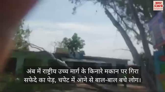VIDEO : अंब में राष्ट्रीय उच्च मार्ग के किनारे मकान पर गिरा सफेदे का पेड़, चपेट में आने से बाल-बाल बचे लोग