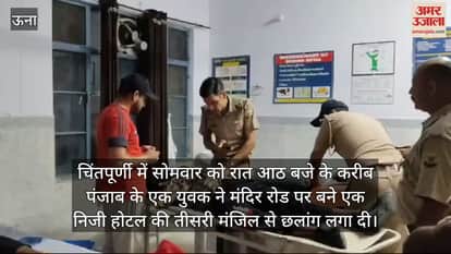चिंतपूर्णी में सोमवार को रात आठ बजे के करीब पंजाब के एक युवक ने मंदिर रोड पर बने एक निजी होटल की तीसरी मंजिल से छलांग लगा दी। गनीमत ये रही कि युवक की जान बच गई है और मौके पर स्थानीय युवकों ने उसे तुरंत अस्पताल पहुंचाया। वहीं, चिंतपूर्णी पुलिस को भी घटना की जानकारी मिली और मौके पर अस्पताल पहुंची। वहीं, बाजार के स्थानीय दुकानदारों ने पुलिस को बताया कि उक्त युवक सड़क से दौड़ता हुआ आया और होटल के अंदर जाकर पीछे की तरफ जाकर छलांग लगा दी। इससे पहले की स्थानीय दुकानदार कुछ समझ पाते उन्होंने युवक को चिंतपूर्णी अस्पताल पहुंचाया। जिसके बाद घटना की जानकारी चिंतपूर्णी पुलिस को दी। पुलिस ने अस्पताल में जाकर युवक से बात की तो उसने बताया कि वे अपने दोस्तों के साथ आया हुआ है। घायल हुए युवक ने पुलिस को अपने घर का पता भी और फोन नंबर भी बताया। जिसके बाद पुलिस ने फोन पर युवक की बात उसके घरवालों से करवाई। वहीं, युवक की रीढ़ की हड्डी फ्रेक्चर हुई और टांग में फ्रेक्चर हुआ है। पुलिस ने युवक के घरवालों को चिंतपूर्णी बुला लिया है। चिंतपूर्णी थाना के एएसआई महेंद्र सिंह सोनी ने बताया कि युवक का नाम जतिन्द्र सिंह सपुत्र सुरेन्द्र फिल्लोर जालंधर का रहने वाला है। युवक ने छलांग क्यों लगाई पुलिस इस बारे में छानबीन में जुट गई है। उक्त जगह देहरा थाना में पड़ती है इसलिए मामले के बारे में देहरा पुलिस को सूचित कर दिया गया है। फिलहाल युवक को ऊना रेफर किया जा रहा है।