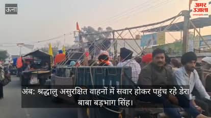 अंब: श्रद्धालु असुरक्षित वाहनों में सवार होकर पहुंच रहे डेरा बाबा बड़भाग सिंह