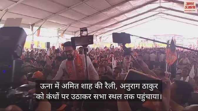 VIDEO : ऊना में अमित शाह की रैली, अनुराग ठाकुर को कंधों पर उठाकर सभा स्थल तक पहुंचाया