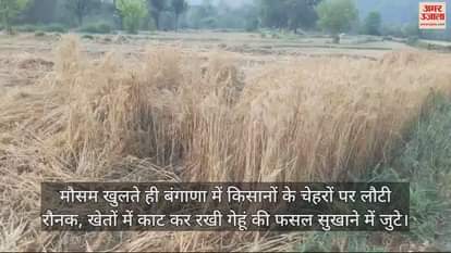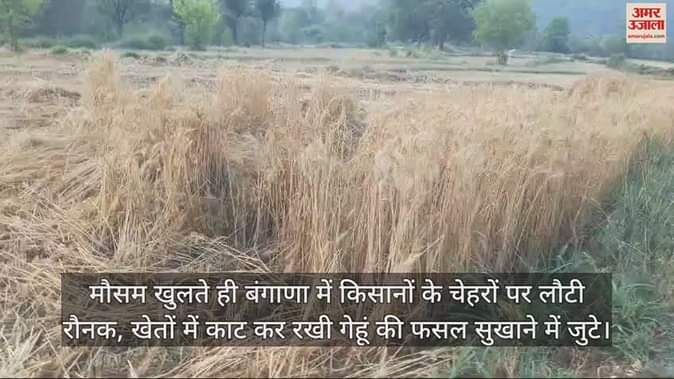 VIDEO : मौसम खुलते ही बंगाणा में किसानों के चेहरों पर लौटी रौनक, खेतों में काट कर रखी गेहूं की फसल सुखाने में जुटे