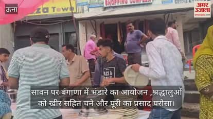 Una: सावन पर बंगाणा में भंडारे का आयोजन ,श्रद्धालुओं को खीर सहित चने और पूरी का प्रसाद परोसा