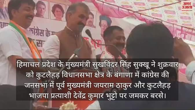 हिमाचल प्रदेश के मुख्यमंत्री सुखविंदर सिंह सुक्खू ने शुक्रवार को कुटलैहड़ विधानसभा क्षेत्र के बंगाणा में कांग्रेस की जनसभा में पूर्व मुख्यमंत्री जयराम ठाकुर और कुटलैहड़ भाजपा प्रत्याशी देवेंद्र कुमार भुट्टो पर जमकर बरसे। मुख्यमंत्री ने कहा कि देवेंद्र कुमार भुट्टो जब भी मेरे पास आते थे तो ठेकेदारों की ही बात लेकर आते थे। कुटलैहड़ विधानसभा क्षेत्र में विकास की बात नहीं करते थे। हमने भी सोचा था कि हमारी विधानसभा क्षेत्र के साथ लगता बंगाणा क्षेत्र को अधिक से अधिक विकासशील बनने में कार्य किए जाएं। परन्तु जिसे जनता ने जीता कर भेजा था। वह अपने ही विकास में लगा हुआ था। यह बिकाऊ विधायक बनेगा कभी सोचा नहीं था। यह जो बंगाणा की खड्डों में अवैध खनना माफियाओं को आने वाले दिनों में बक्शा नहीं जाएगा। यह लोग जल्द सलाखों के पीछे होंगे।
