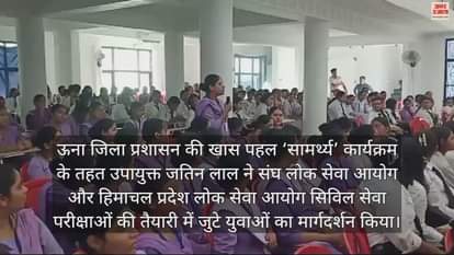 ऊना जिला प्रशासन की खास पहल ‘सामर्थ्य’ कार्यक्रम के तहत उपायुक्त जतिन लाल ने संघ लोक सेवा आयोग (यूपीएससी) और हिमाचल प्रदेश लोक सेवा आयोग (एचपीपीएससी) सिविल सेवा परीक्षाओं की तैयारी में जुटे युवाओं का मार्गदर्शन किया। उन्होंने ‘सामर्थ्य’ कार्यक्रम के तहत शुक्रवार को हिमकैप्स कॉलेज बढे़ड़ा में आयोजित मार्गदर्शन और काउंसलिंग सत्र में कॉलेज के करीब 500 विद्यार्थियों को सिविल सेवा परीक्षा समेत अन्य प्रतियोगी परीक्षाओं को पास करने को लेकर तैयारी के नजरिये से महत्वपूर्ण टिप्स दिए।उन्होंने विद्यार्थियों को विषय चयन, सिलेबस की जानकारी देने के अलावा उनसे अपने अनुभव साझा करते हुए मनोबल बढ़ाया। उपायुक्त ने युवाओं की परीक्षा से जुड़ी जिज्ञासाओं-शंकाओं का समाधान भी किया। उन्होंने युवाओं से सफलता के लिए सही दिशा में, सही दृष्टिकोण से पूरे उत्साह के साथ लगातार समर्पित प्रयास जारी रखने का आह्वान किया। कार्यक्रम के उपरांत जतिन लाल ने बताया कि ऊना जिला प्रशासन सामर्थ्य कार्यक्रम के तहत युवाओं एवं महिलाओं के कल्याण व उत्थान को लेकर मुख्यतः 6 घटकों पर काम कर रहा है, जिनमें से एक महत्वपूर्ण घटक के रूप में प्रतियोगी परीक्षाओं को लेकर युवाओं का मार्गदर्शन करना भी शामिल है। इसमें यूपीएससी, एचपीपीएससी सिविल सेवा परीक्षा समेत अन्य प्रतियोगी परीक्षाओं को पास करने से जुड़े हर पहलू को लेकर युवाओं का मार्गदर्शन करने का प्रयास किया जा रहा है। उन्होंने कहा कि अमूमन देखा गया है कि युवाओं को इन परीक्षाओं को लेकर कई चीजों की जानकारी ही नहीं होती। जिसके चलते उन्हें कई तरह की दुविधाओं-दिक्कतों का सामना करना पड़ता है। परीक्षा के विषयों से लेकर किताबों तक के बारे में सही जानकारी के अभाव में यहां वहां भटकना पड़ता है। हमारी कोशिश है कि उनकी समस्याएं सुनकर समाधान किया जाए। उनके वित्तीय दिक्कतों से लेकर मानसिक परेशानियों तक में मदद की जाए। इसके लिए सामर्थ्य कार्यक्रम के तहत प्रयास किए जा रहे हैं। उपायुक्त ने सामर्थ्य कार्यक्रम के विषय में आगे बताया कि प्रतियोगी परीक्षाओं की तैयारी में मदद के साथ साथ इस कार्यक्रम के तहत आर्थिक रूप से कमजोर वर्गों की पात्र लड़कियों को उच्च शिक्षा में सहायता की पहल की गई है। इसमें जिला प्रशासन ने गरीब परिवारों की 25 जरूरतमंद लड़कियों की पढ़ाई का खर्च उठाने का निर्णय लिया है। इसके लिए केवल वही लड़कियां पात्र होंगी जिनके पिता गुजर गए हों या 70 प्रतिशत से अधिक दिव्यांग हों। आवेदक ऊना जिले की निवासी होनी चाहिए, उन्होंने किसी अन्य योजना का लाभ न लिया हो तथा उनके परिवार की वार्षिक आय 50 हज़ार रुपये या इससे कम होनी चाहिए। चयनित लड़कियों को उनकी डिग्री या उच्च शिक्षा के लि