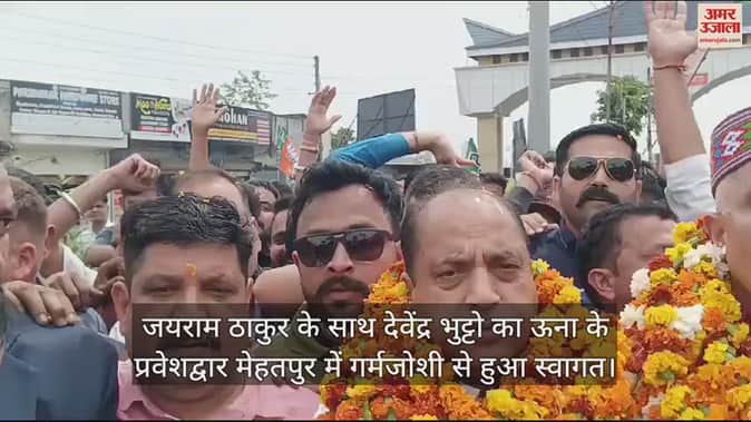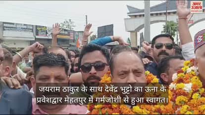 VIDEO : जयराम ठाकुर के साथ देवेंद्र भुट्टो का ऊना के प्रवेशद्वार मेहतपुर में गर्मजोशी से हुआ स्वागत