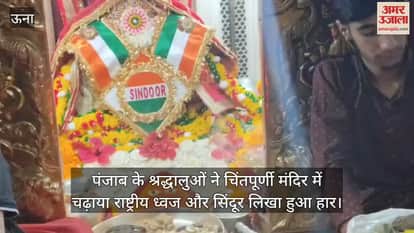 Una: पंजाब के श्रद्धालुओं ने चिंतपूर्णी मंदिर में चढ़ाया राष्ट्रीय ध्वज और सिंदूर लिखा हुआ हार