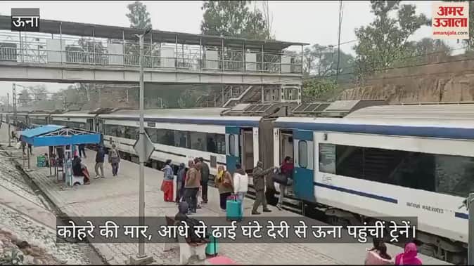 ऊना में कोहरे की मार के चलते शनिवार को लगातार दूसरे दिन भी ट्रेनों की आवाजाही प्रभावित हुई। कम दृश्यता के चलते ट्रेनों की रफ्तार थम गई। लंबी दूरी से ऊना रेलवे स्टेशन आने वाली ट्रेनें आधे से ढाई घंटे देरी से पहुंचीं। इससे आम जनता को काफी परेशानी झेलनी पड़ी। यात्री घंटों प्लेटफार्म के पास बैठकर इंतजार करते रहे। दिनभर प्लेटफार्म पर लोगों की भीड़ रही।