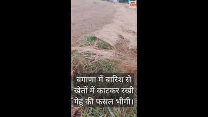 VIDEO : बंगाणा में बारिश से खेतों में काटकर रखी गेहूं की फसल भीगी, किसानों की परेशानी बढ़ी